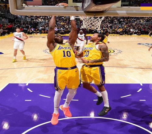 首先,湖人主力球员的表现其实并不差,虽然背靠背作战让体力面临挑战,但球员们的态度还是很努力的,八村垒出战36分钟,投篮12中6,得到16分6篮板1助攻1盖帽。艾顿出战35分钟,投篮15中8,得到16分8篮板2助攻2抢断1盖帽,上一场爆砍51分的里夫斯依旧神勇,在开拓者三人包夹的情况下,全场依旧狂轰41分4篮板5助攻3抢断,这让人相信,只要湖人保持健康,等到詹姆斯,东契奇等人回归,这支湖人本赛季的进攻火力一定会非常恐怖。