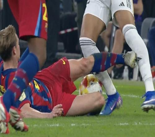 德容是第65位西班牙国家德比染红球员,其中巴萨29人皇马36人
